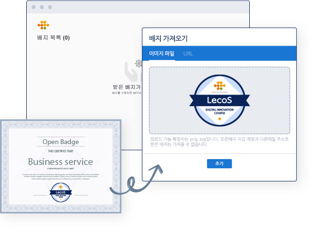 *LecoS에서 제공하는 블록체인형 오픈배지는 교육 분야의 디지털 증명서로서 오픈 스탠다드인 Blockcerts를 이용하고 있습니다.
